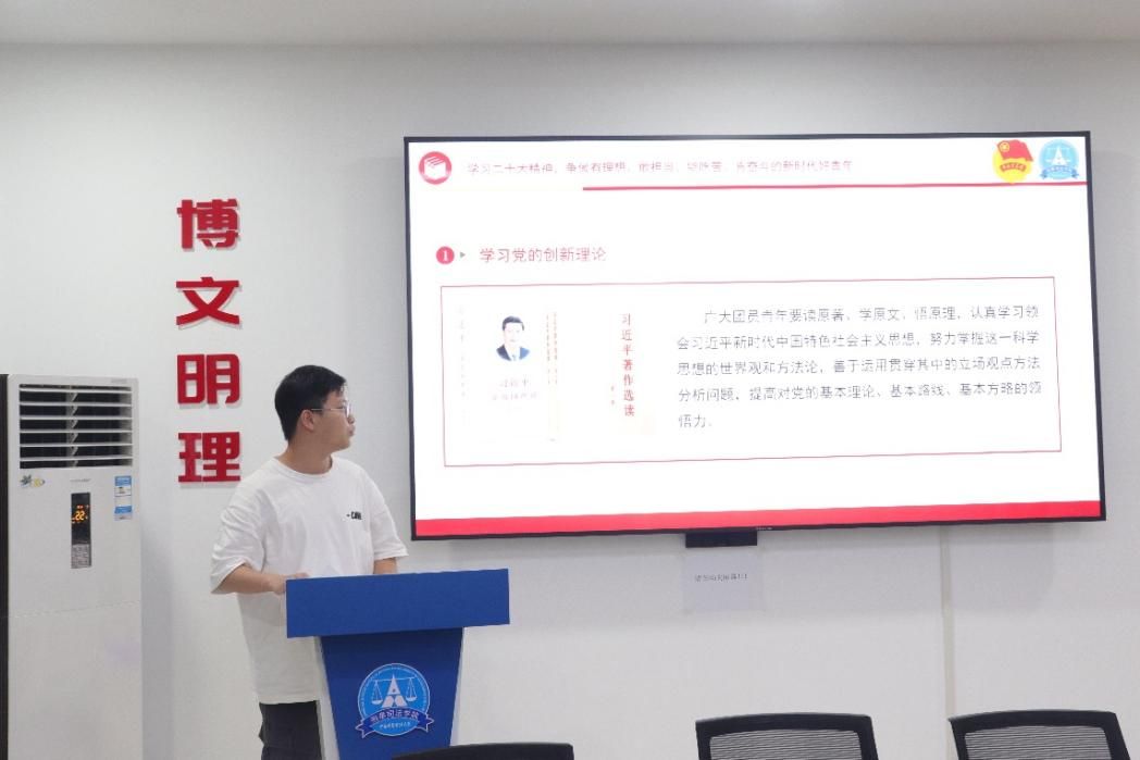 活动第一项,张凡稷老师动员大家学理论、读经典著作,多读书、读好书,为推动中国式现代化建设贡献青年力量。会上,他强调了开展读书季的四点工作要求:一是学院团委和学生会要通过组织荐读、专家导读、骨干领读、经典诵读、实践研读等方式,组织团员青年学习党的创新理论,提高青年对党的基本理论、基本路线、基本方略的领悟力;二是团员青年要学好党史,感悟党的光辉历程;三是团员青年要深入学习党的二十大关于全面建成社会主义现代化强国、以中国式现代化全面推进中华民族伟大复兴的战略部署,助力实现中华民族伟大复兴;四是团员青年要广泛阅读中华优秀典籍,传承中华优秀传统文化。