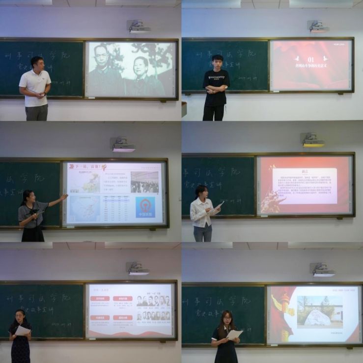 此次参赛的六位选手结合自身经历和背景,紧扣比赛主题,以丰富的词句、生动的故事、昂扬的激情,表达了新时代弘扬新思想,践行新征程的思想觉悟。2024级刑法学研究生黄海洋在《汲取党史力量,奔赴基层山海》演讲中分享自己在甘肃酒泉支教期间参观卫星发射基地、铁人王进喜纪念馆的经历,呼吁新时代中南大刑司学子从党的光辉历史中吸取挑战困难、战胜苦难的精神力量,继续不惧风雨勇往直前;2023级侦查学研究生陈智在《新时代发扬井冈山斗争精神》中回顾了井冈山斗争的历史意义,阐释了井冈山斗争的精神内涵,进一步表达了自己对于新时代如何发扬井冈山精神的理解;2024级刑法学研究生刘润一在《铁路上的中国——下一站,伟大复兴》演讲中,介绍了中国铁路的发展历程,从绿皮火车、人工售票到复兴号的一代一代薪火相传,中国铁路的建设带来了人民幸福感增强,国家凝聚力提升,从峥嵘岁月驶向复兴富强;2024级侦查学研究生刘君临在《新四军的由来和历史》演讲中介绍了新四军的历史,鼓励新时代青年学习新四军不忘初心,服务人民、敢于斗争,清正廉洁的新四军精神;2024级侦查学研究生范子颖在《踏寻党史足迹,见证辉煌历程》中介绍了中共一大的会议历程和历史意义,在学习中共一大精神要旨中坚定理想信念,传承红色基因,弘扬革命精神;2024侦查学研究生王思琪以《西柏坡时期中央妇委会:掀开中国妇女运动新篇章》为题,展示了中央妇委会的贡献,开启中国妇女运动新篇章的历史意义,呼吁我们要做奔跑着的追梦人,激昂新时代妇女建功新力量。